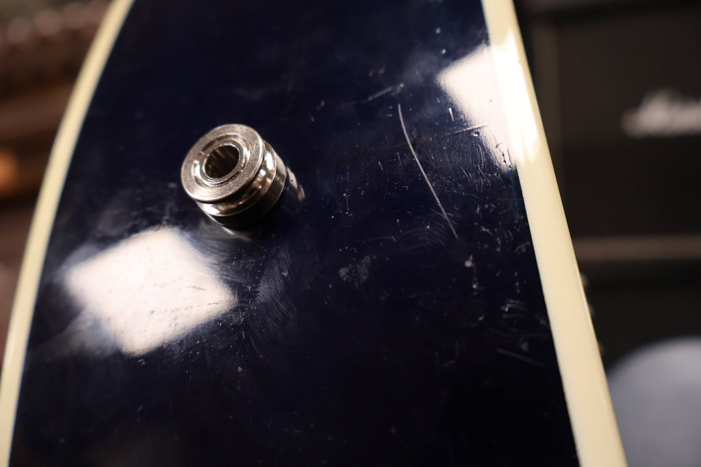 Pickup inside, so also works on a amp. Very sensitive passive pickup.