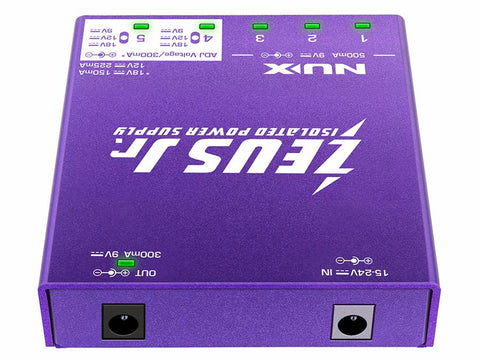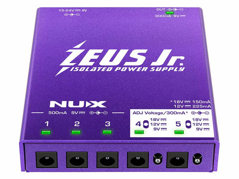 The NUX NIP-Z6 Zeus Jr. is a compact, high-performance power supply designed to deliver clean, stable power to modern pedalboards. With six fully isolated DC outputs, including two adjustable voltage outputs, Zeus Jr. handles both analog and high-current digital pedals with ease. Its ultra-low-noise, self-regulated output ensures consistent performance without interference, making it ideal for stage or studio use. Despite its small footprint, Zeus Jr. packs serious power and comes ready to mount on virtually any board, offering a reliable and efficient solution for demanding pedal setups.
