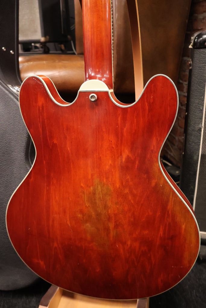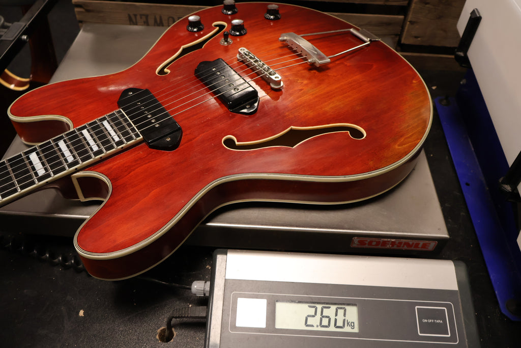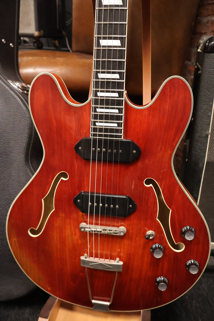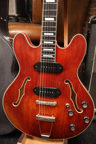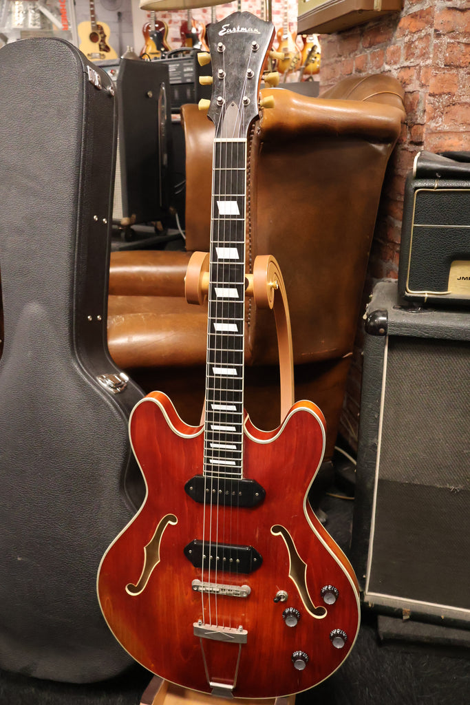 Played In Eastman T64V-T Thinline P90s in very good condition, has normal play wear. Frets show signs of use, plenty of life on them. This is a early version of the T64 so it arrived without a pickgaurd. It's the nice varnish model sounds very nice. Comes with certificate and original hard case