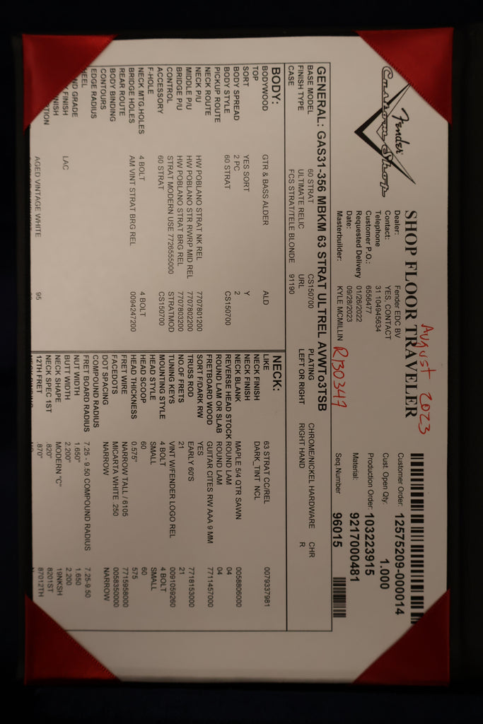 Fender Stratocaster 63 Ult-Relic AVWT/3TSB Kyle Mcmillin 2023
