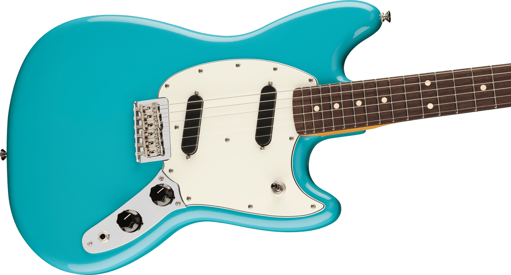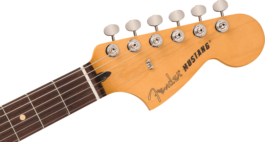 The Player II Mustang radiates timeless Fender charm, but under the hood, it's primed for today's players. Everything about the neck is designed for fast and fluid playability, from the Modern “C”-profile with silky satin urethane finish on the back to the comfy 9.5”-radius slab rosewood or maple fingerboard with smooth rolled edges and 22 medium jumbo frets. A classic alder body is available in both timeless Fender finishes and never-before-seen colors unearthed from the archives. Player Series Alnico V Single-Coil Mustang® pickups offer crystalline highs, musical mids and tight lows that elevate any genre. The 3-way toggle switch lets you easily dial in everything from glassy neck pickup chime to cutting bridge pickup snarl and all points in between, while a 6-saddle hardtail bridge, bent steel saddles and ClassicGear™ tuners ensure precise tuning stability for the flexibility to explore endless sonic possibilities.