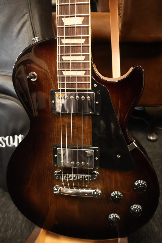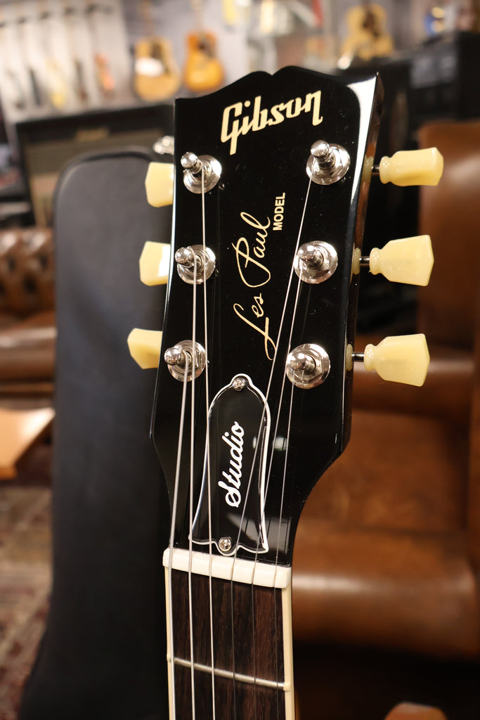 Now, the Les Paul Studio has been refreshed and is better and more versatile than ever. It features an Ultra Modern weight-relieved mahogany body, making it lighter and more comfortable to play, no matter how long the gig or jam session runs. The carved, plain maple cap adds brightness and definition to the overall tone and combines perfectly with the warmth and midrange punch from the mahogany body for that legendary Les Paul sound that has been featured on countless hit recordings and on concert stages worldwide. The glued-in mahogany neck provides rock-solid coupling between the neck and body for increased resonance and sustain. The neck features a traditional heel and a fast-playing SlimTaper™ profile, and it is capped with a bound rosewood fretboard that is equipped with acrylic trapezoid inlays and 22 medium jumbo frets. The 12” fretboard radius makes both rhythm chording and lead string bending equally effortless, and you’re going to love how this instrument feels in your hands. The Vintage Deluxe tuners with Keystone buttons add to the guitar’s classic visual appeal, and together with the fully adjustable aluminum Nashville Tune-O-Matic™ bridge, lightweight aluminum Stop Bar tailpiece, and Graph Tech® nut, help to keep the tuning stability nice and solid so you can spend more time playing and less time tuning.