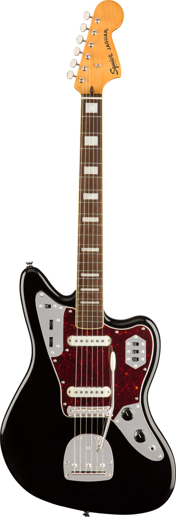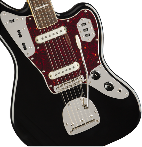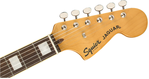 The Classic Vibe '70s Jaguar® turns up the volume on retro style and produces incredible tone courtesy of its dual Fender-Designed alnico single coil pickups. Small hands will appreciate the short 24" scale length and slim, comfortable "C"-shaped neck profile with an easy-playing 9.5"-radius fingerboard and narrow-tall frets. This Jaguar is faithful to the original with a vintage-style tremolo system for expressive string bending effects and floating bridge with barrel saddles for solid string stability. This throwback Squier model also features 1970s-inspired headstock markings, rich-looking nickel-plated hardware and a slick vintage-tint gloss neck finish for an old-school vibe.