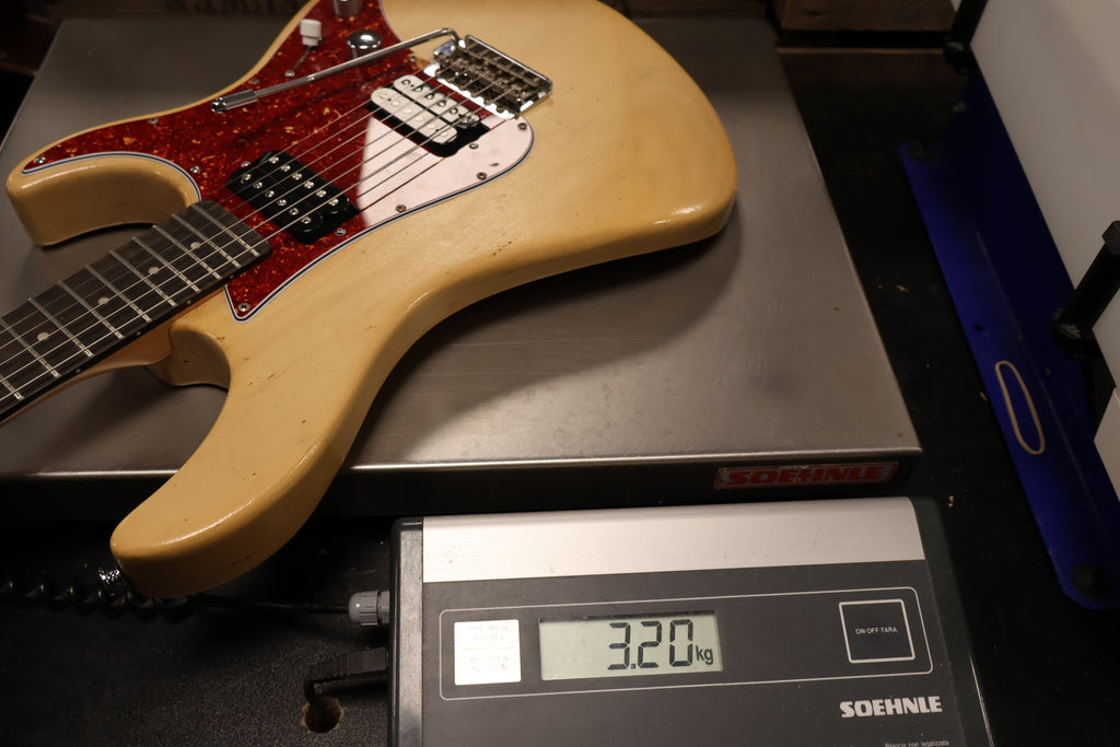 Already played in Yamaha Pacifica very good condition, nice entree level electric guitar with 2 strong humbuckers. Ready to be played, adjusted on 10 gauge elixir strings. Replaced Jackplate, Custom knobs.