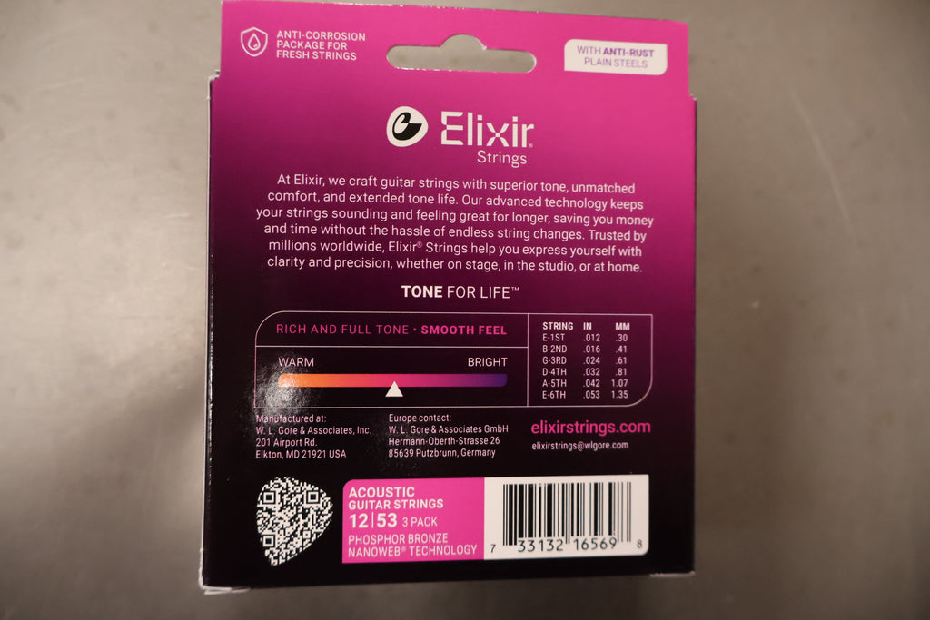 Elixir® Acoustic Phosphor Bronze NANOWEB Coating deliver a bright, lively tone together with extended tone life that players have come to expect from Elixir Strings.