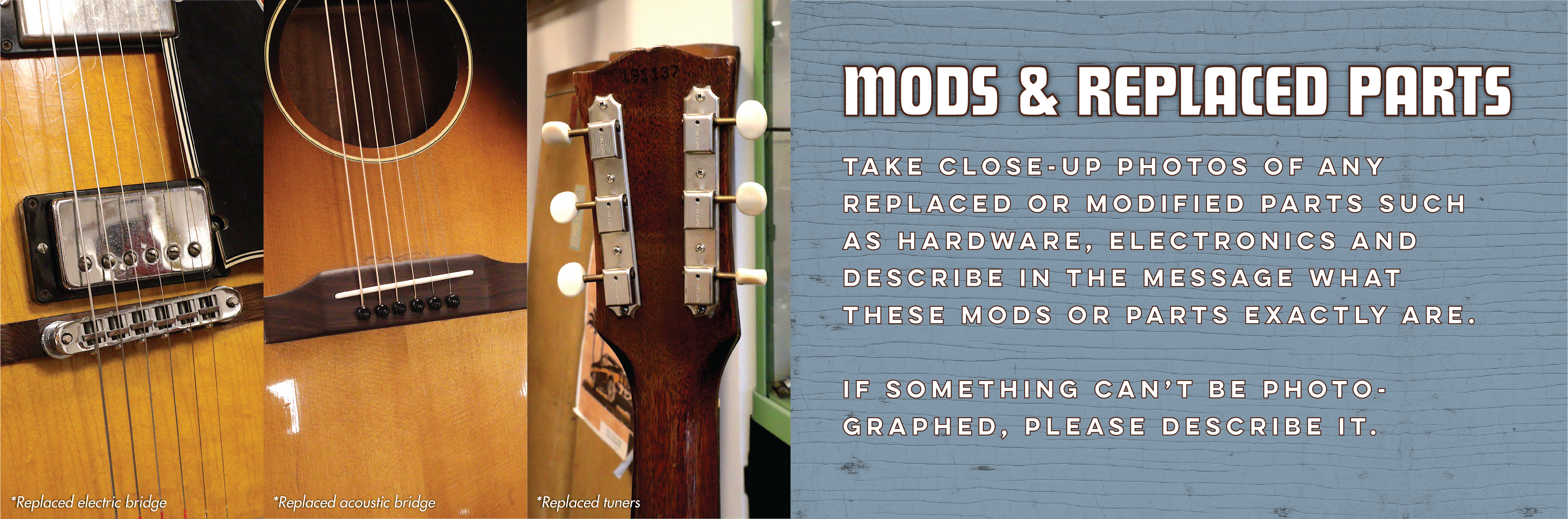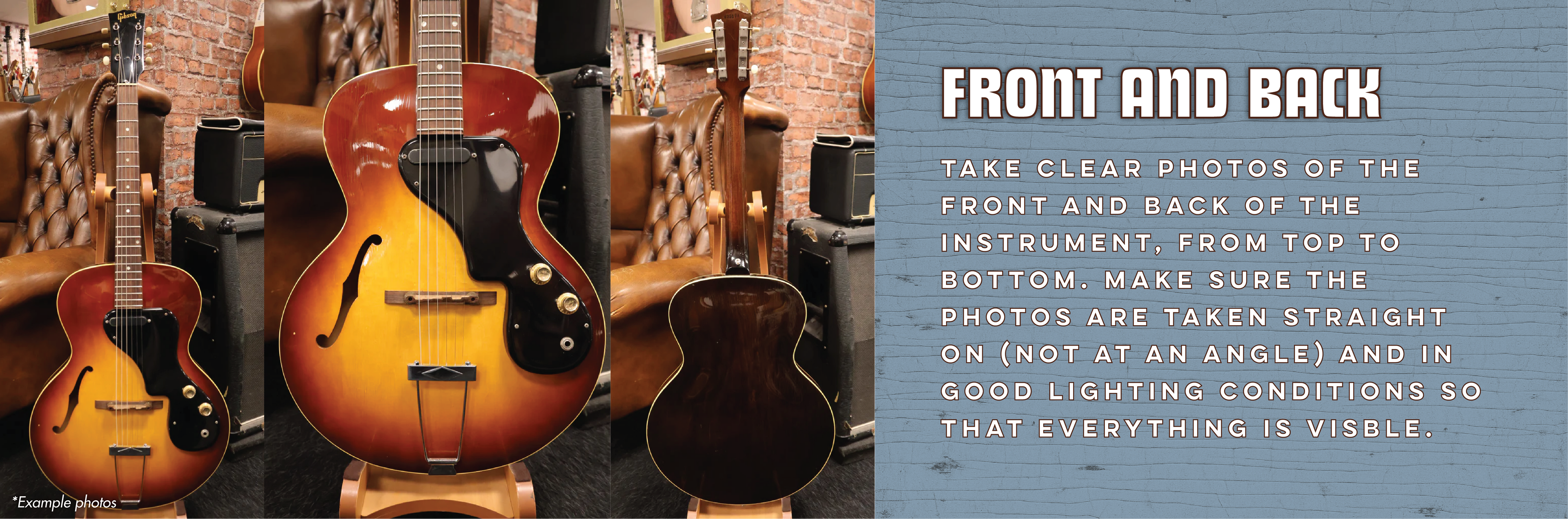 If you believe your guitar or gear might be a good fit for our shop, you can use the form below to share photos and relevant details. This allows us to make an initial assessment and determine whether the instrument fits our collection. Further down this page, you’ll find clear guidelines on how to take photos that help us properly evaluate your instrument. If there is potential interest, we’ll invite you to visit the shop to inspect the guitar in person and discuss the next steps together.