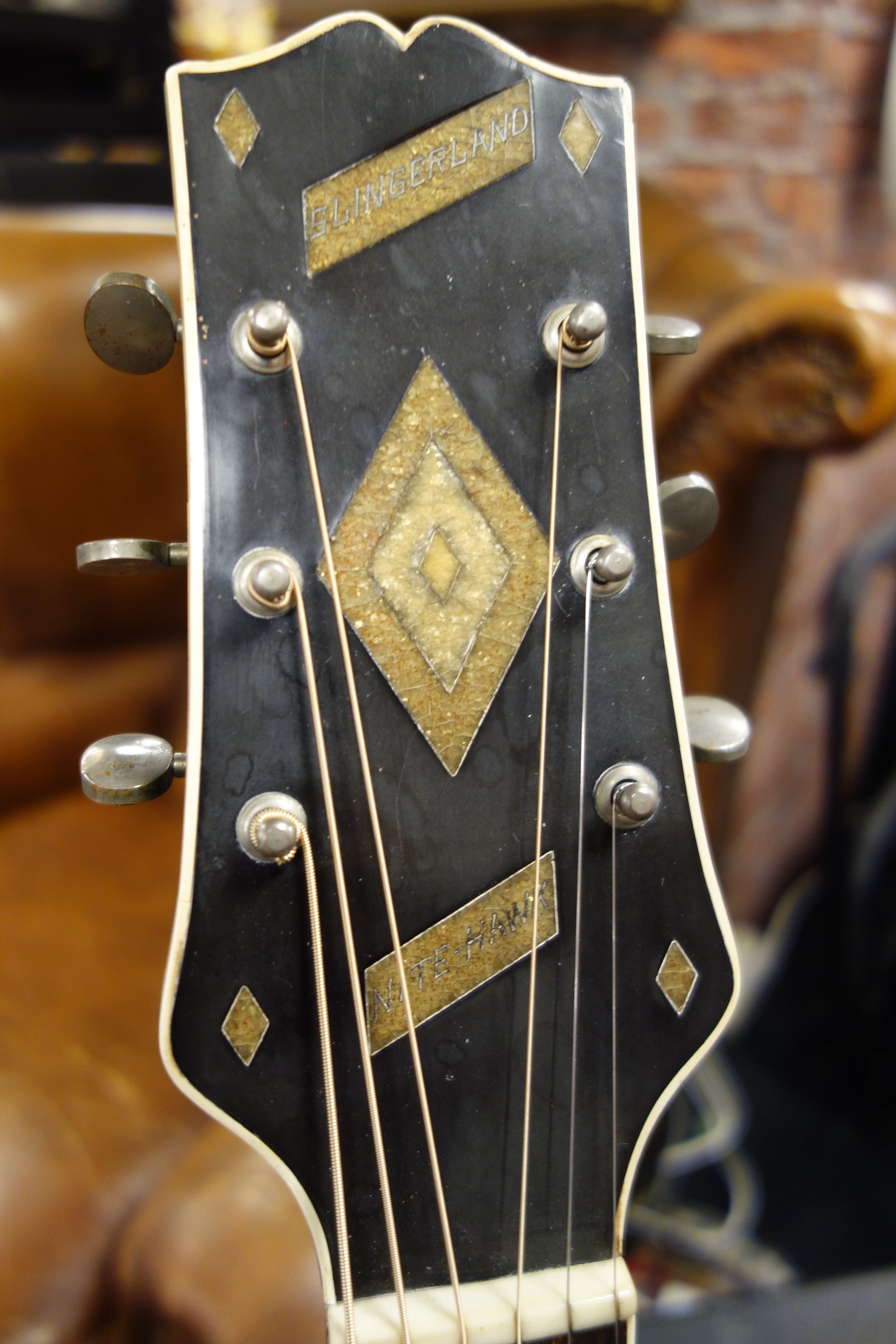 Slingerland Nite Hawk Jazz Guitar '30s Sunburst, rare acoustic jazz guitar to find. Top has been repaired, like a lot of 30s instruments. But is good playing condition.