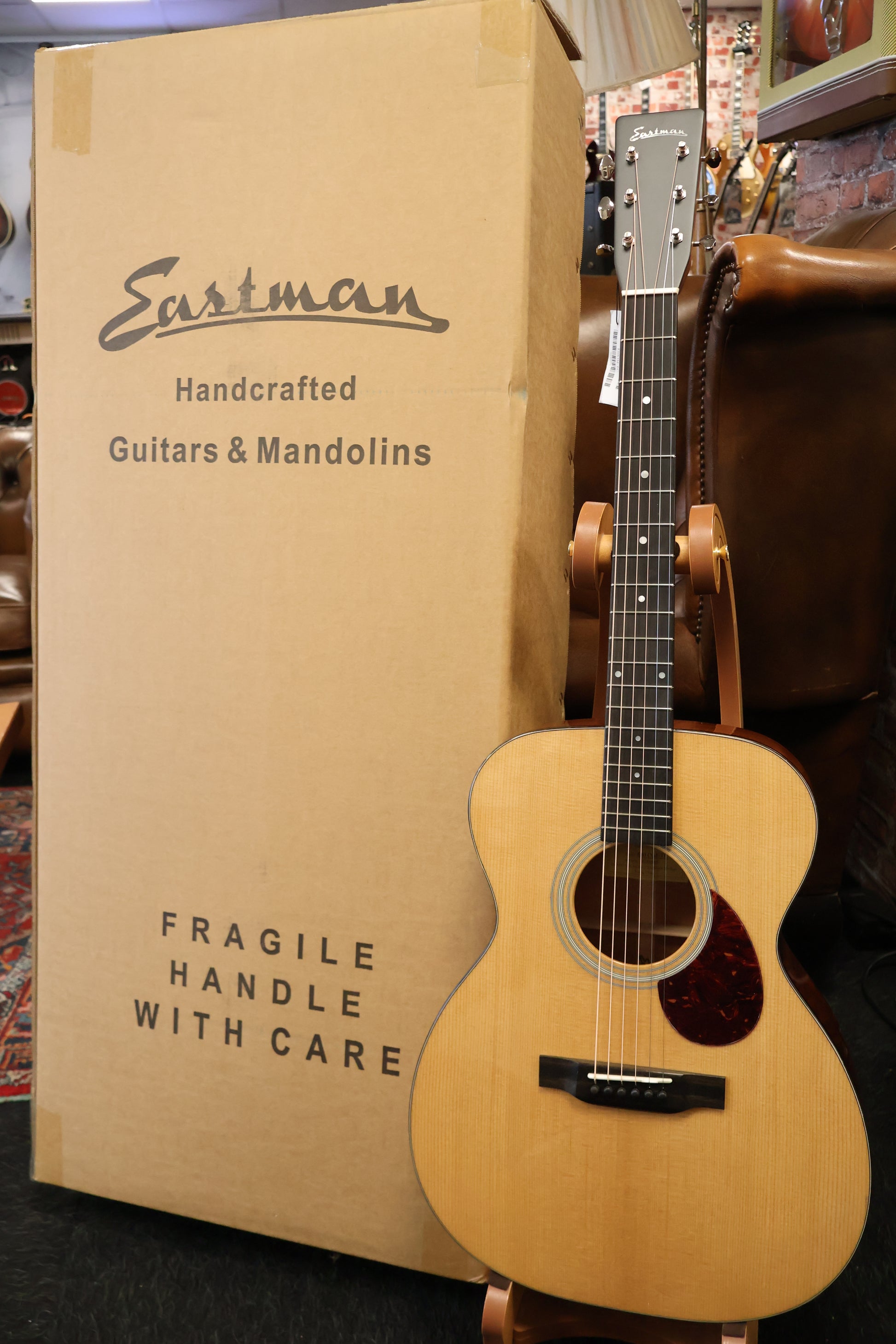 Brand new Eastman E10OM-TC Ochrestral Model Thermo Cured, all solid. So what visual flow did Eastman find on this one. There is a repair on the finish of the top. But we didn't find it. Saves you a lot of money
