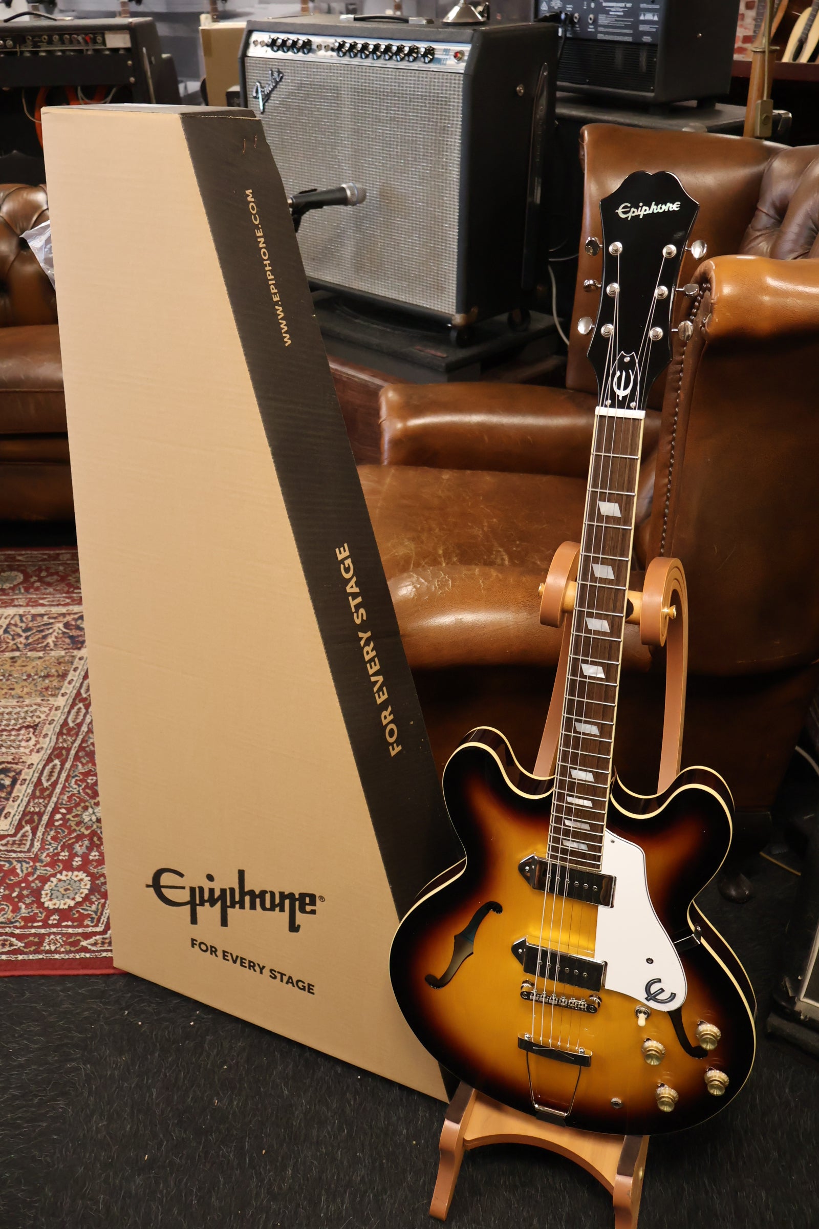 Since 1961, the legendary Casino™ has been Epiphone’s best-selling archtop and a rock ‘n’ roll standard. First introduced in 1961, the Casino was just one of several new thinline archtops designed and produced at the company’s adopted new factory in Kalamazoo, Michigan that it shared with one-time competitor and new partner, Gibson. The Casino was adopted by Keith Richards of The Rolling Stones who used a Casino to record the demo for “Satisfaction” at Chess Records in Chicago. Howlin' Wolf took a Casino on his first tour of the UK, appearing on Thank Your Lucky Stars. Shortly afterward, John Lennon and George Harrison bought Casinos for the Beatles' 1966 world tour. Featuring Dogear PRO P-90 pickups and a 5-ply maple body. Available in Natural and Vintage Sunburst.