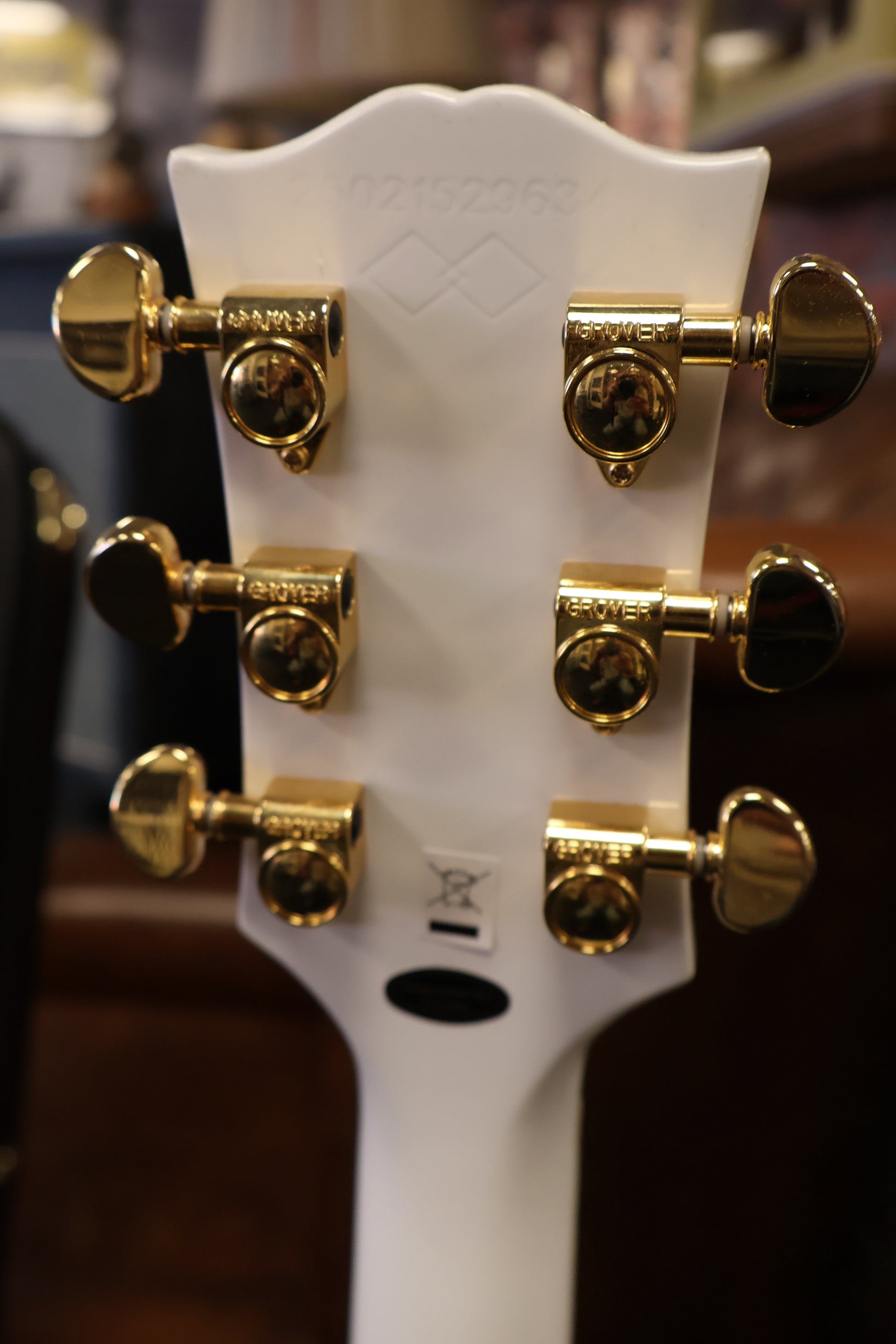 "open book" headstock. Gold hardware, including Grover® Rotomatic® 18:1 gear ratio