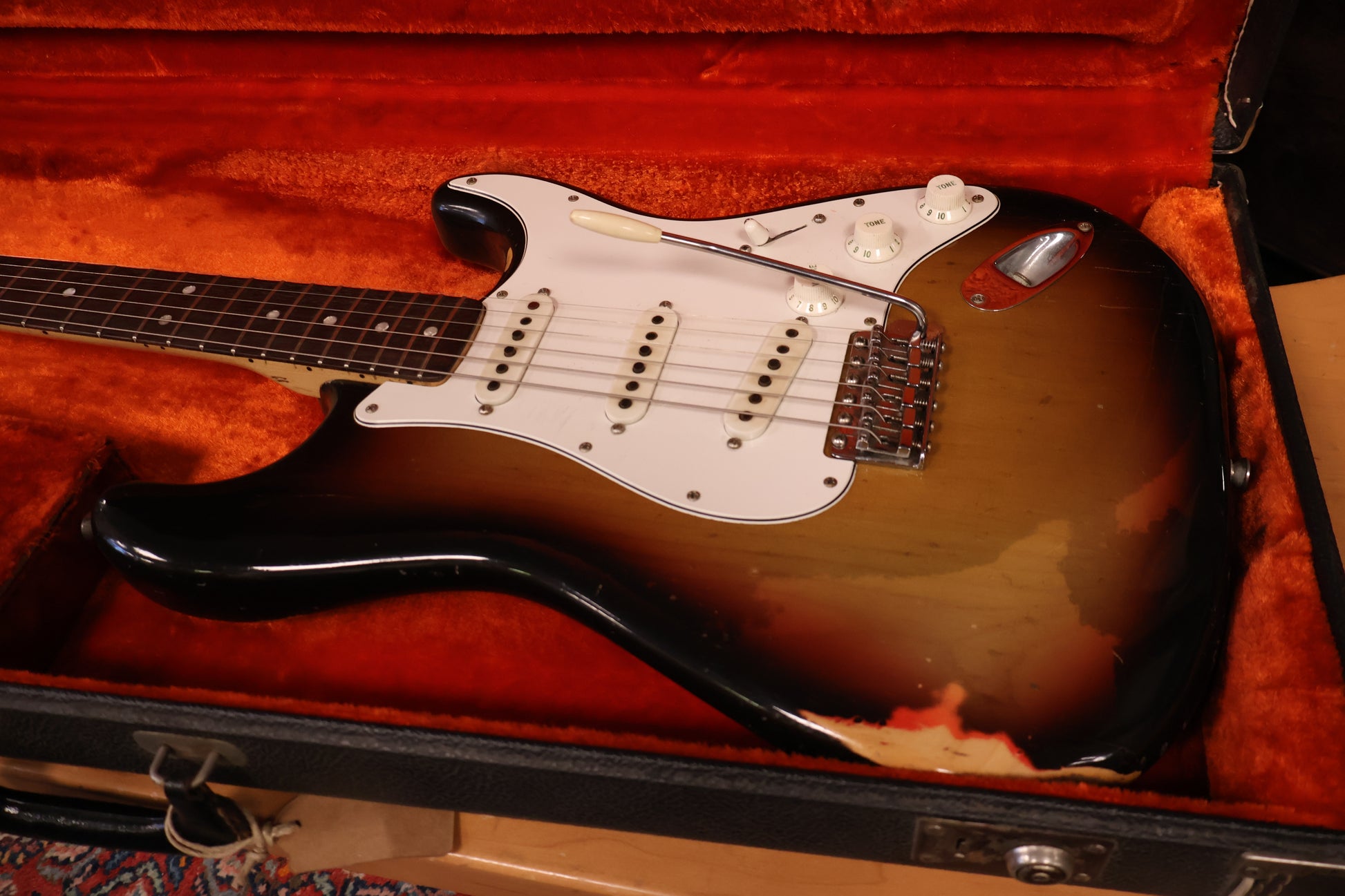 A Vintage Fender Stratocaster 1973 in Sunburst rosewood neck. Nice playing good vintage strat. We just got a lot of vintage strats in so if you have any questions let me know. We will create video content as quick as possible. And your welcome at the store to try them out. Comes with original hardshell case.
