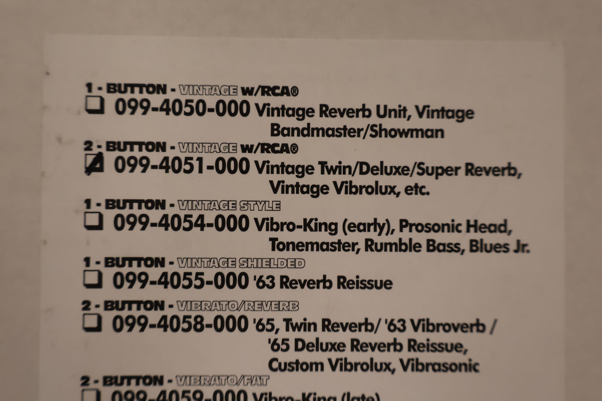 - Used for early Twin Reverb®, Deluxe Reverb®, Pro Reverb, Super Reverb® amd Bandmaster Reverb amplifiers (all vintage amps with dual footswitchable on/off functions requiring RCA connector jack)