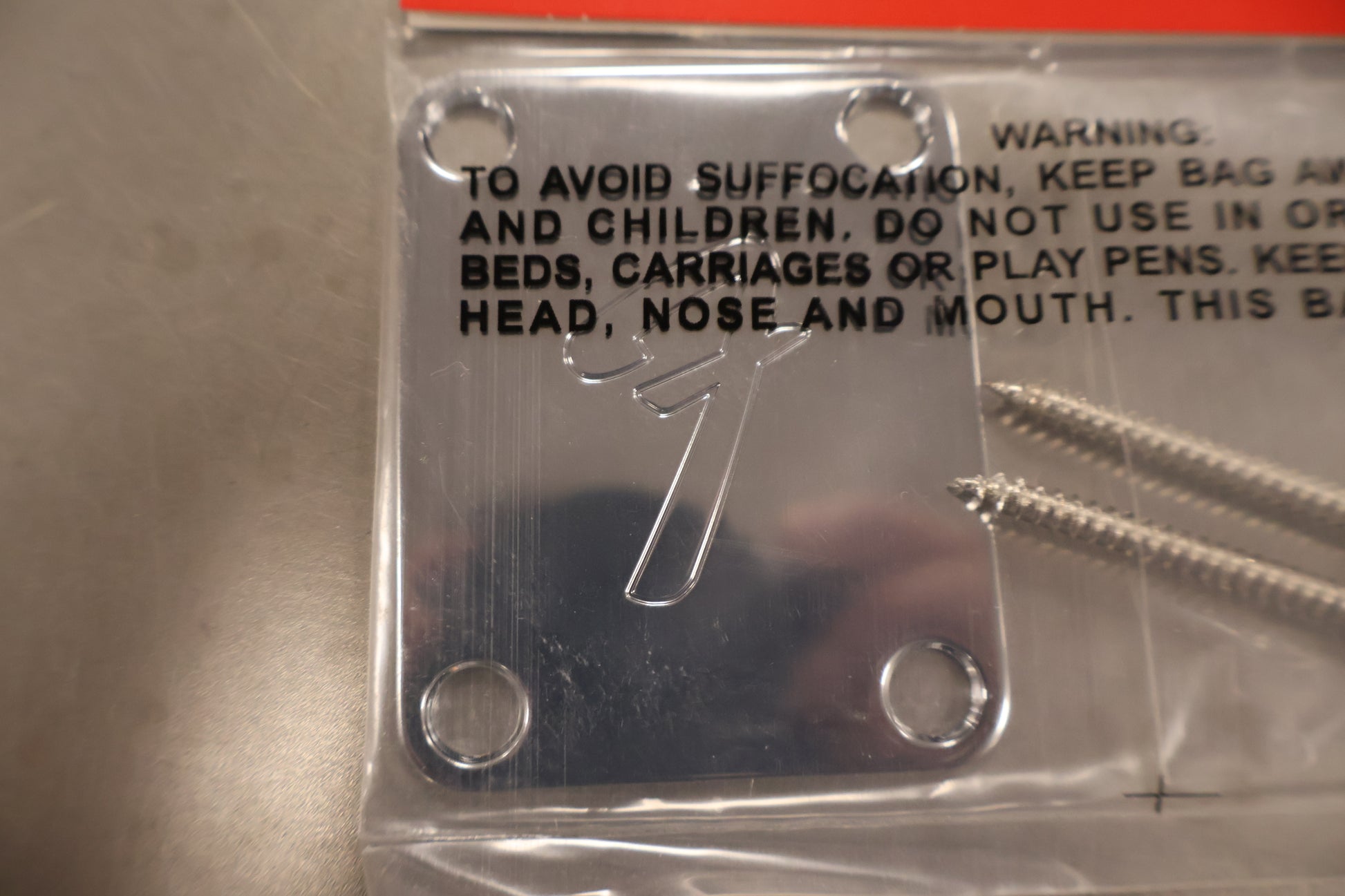 1970s vintage-style neck plate with engraved "F" logo, for use on most Fender guitars and basses using four-screw neck mounting without Micro-Tilt™ adjustment. Mounting screws included.