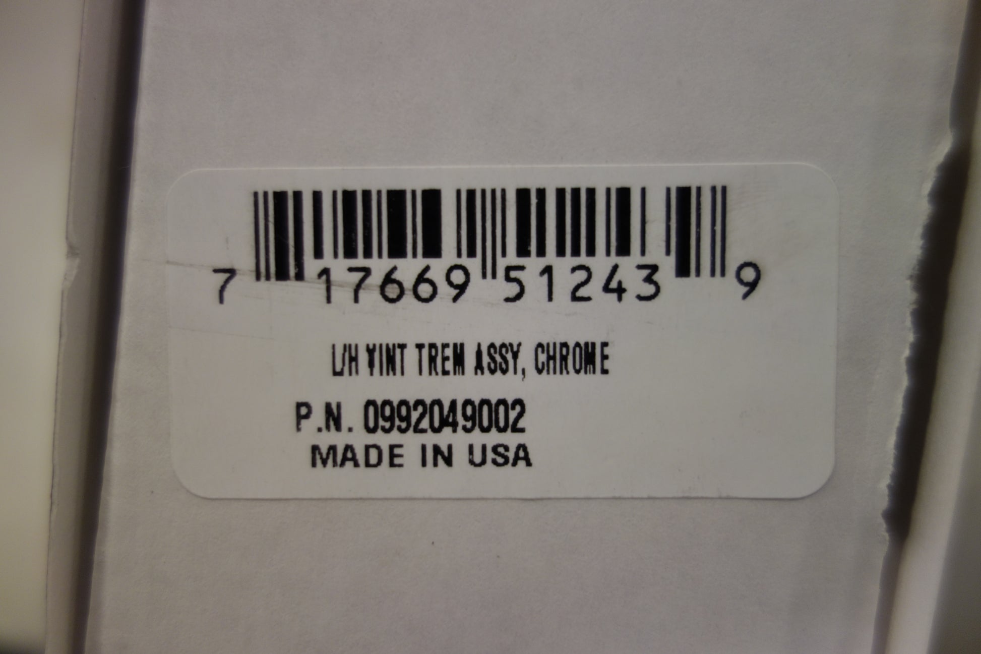 Vintage-style tremolo bridge assembly for use on left-handed American Vintage series Stratocaster models. Includes six "Fender"-stamped bridge saddles with mounting screws, tremolo claw, tremolo springs, tremolo arm with tip, tremolo arm tension spring, string tree, .050 hex adjustment wrench and mounting screws.