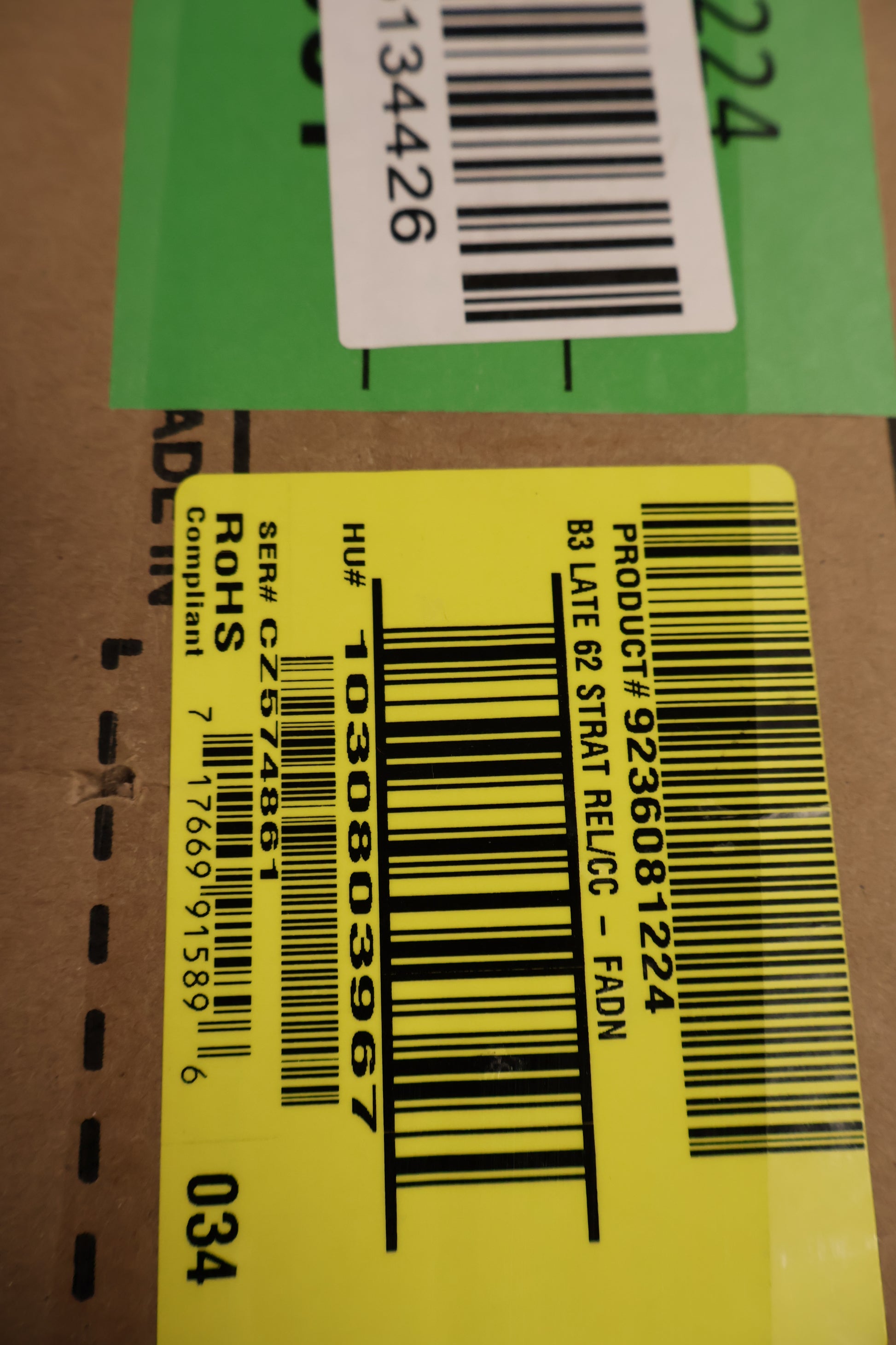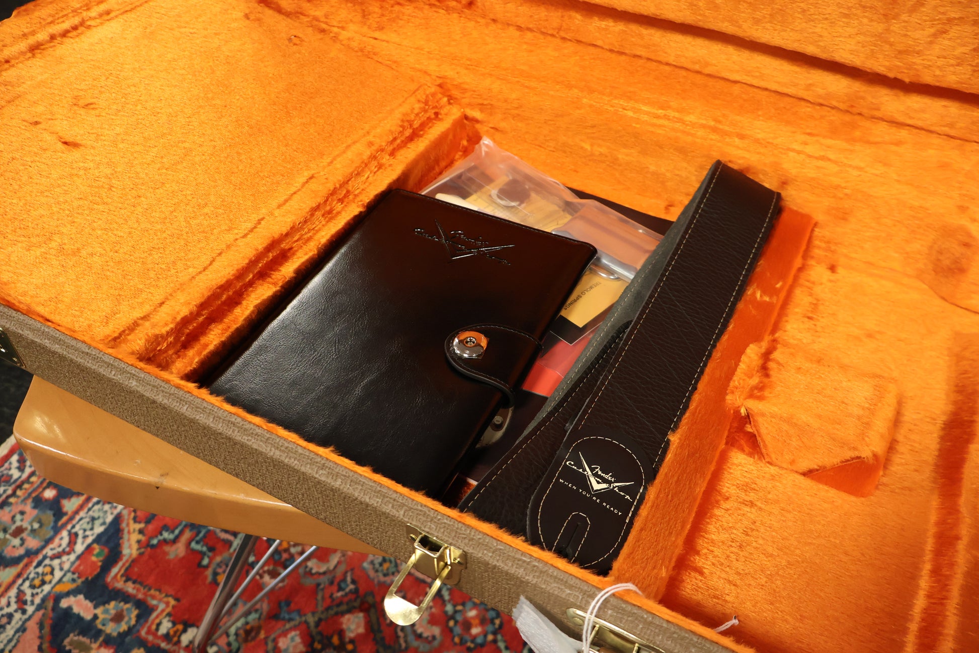 Relic® Lacquer Finish with Closet Classic Hardware; 2-Piece Select Alder Body; Rift Sawn Maple Neck with Round-Lam Rosewood Fingerboard; '60 Style Oval "C" Back-Shape; 9.5" Radius; 21 Narrow Tall (6105) Frets; Custom Shop Hand-Wound '60/'63 Strat® Pickups with RWRP Middle; Vintage Modified #2 Wiring with Tone-Saver Bleed; 5-Way Switch; 3-Ply Mint Green Pickguard; Custom Shop Vintage Synchronized Tremolo; Vintage-Style Tuning Machines; Bone Nut; Wing String Tree with Tall Metal Spacer; Deluxe Hardshell Case; Strap; Certificate of Authenticity.