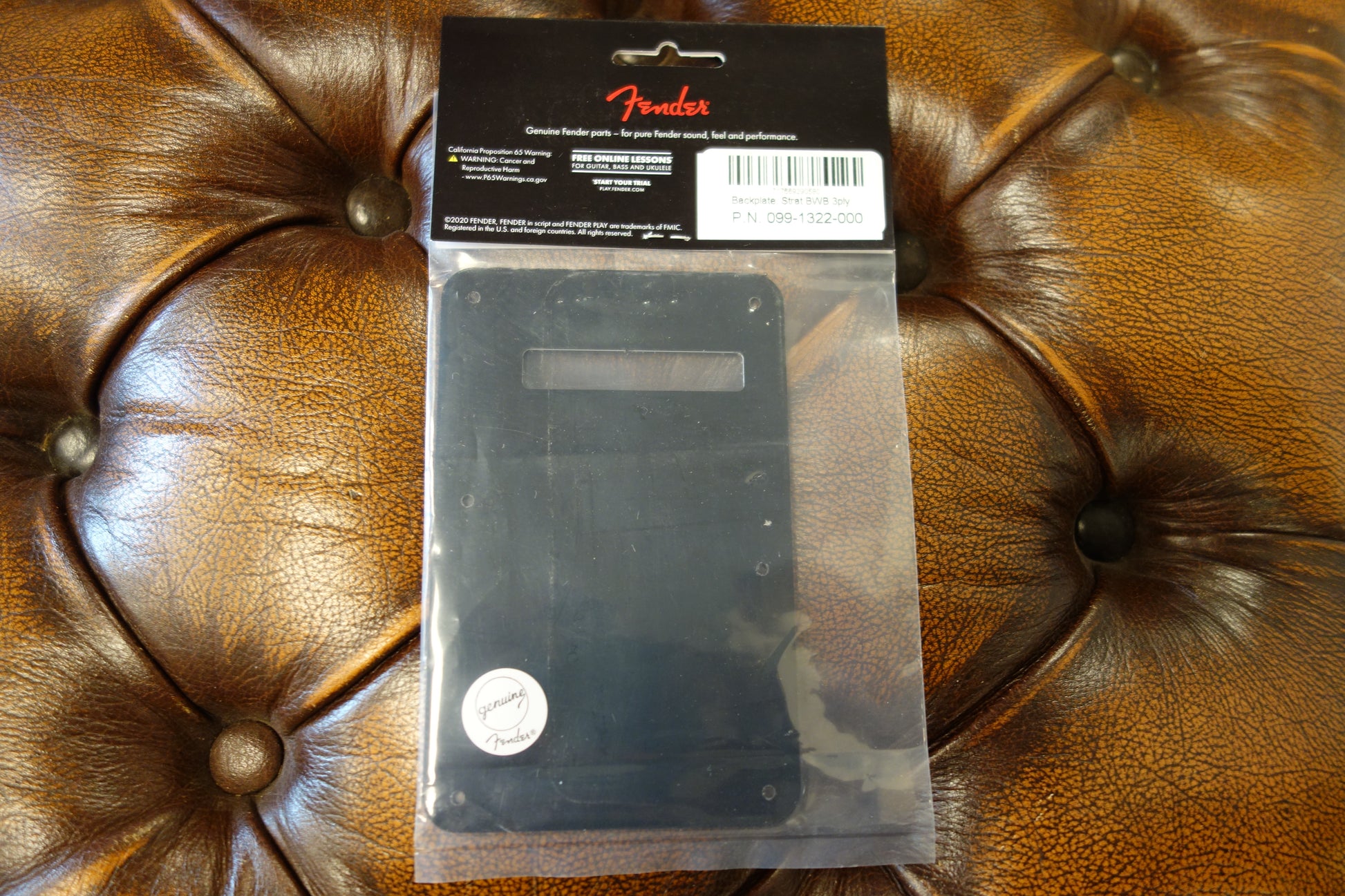 Modern single-ply Stratocaster tremolo backplate with single large string slot.