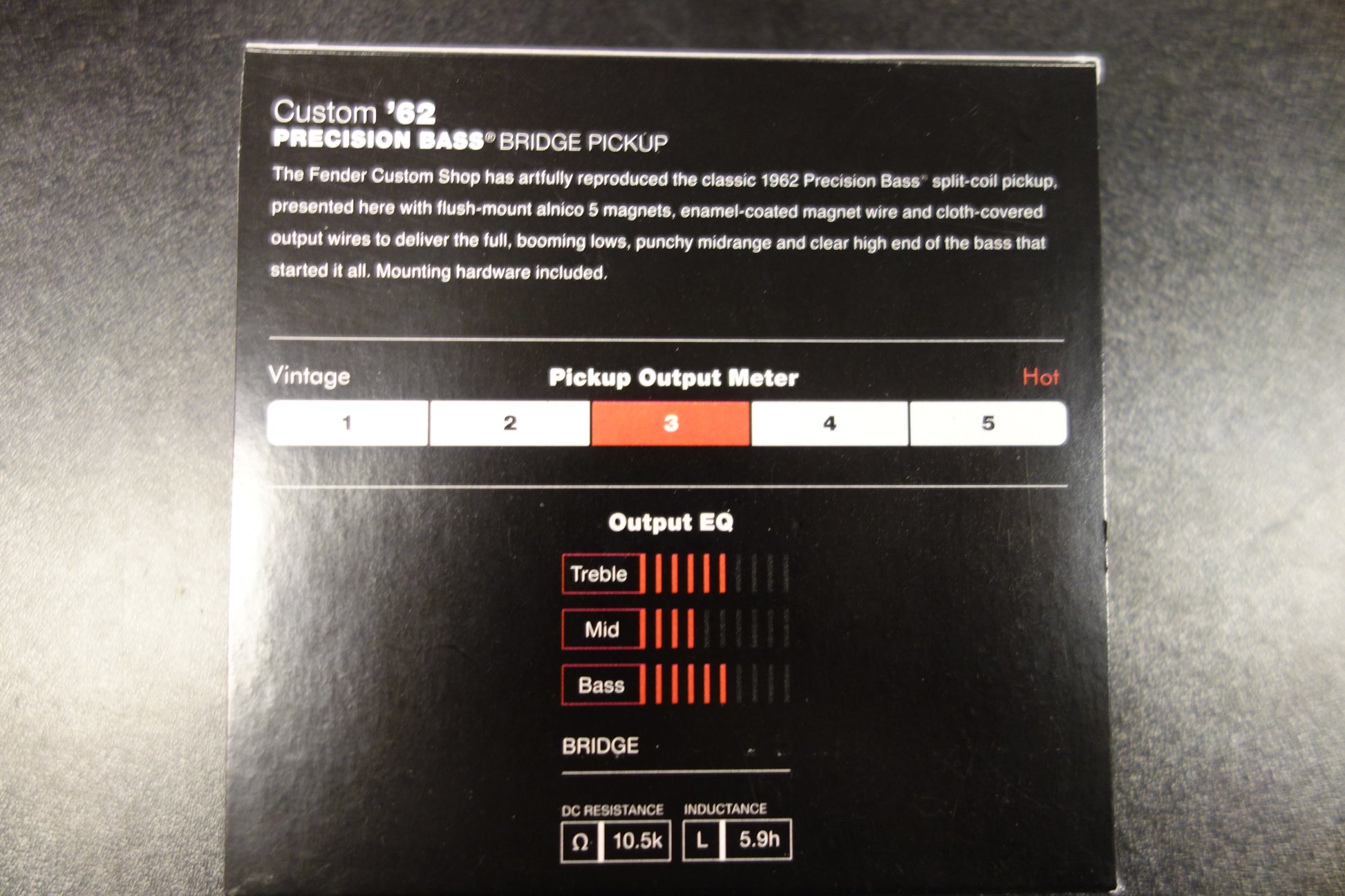 The Fender Custom Shop has artfully reproduced the classic 1962 Precision Bass split-coil pickup to deliver the full booming lows, punchy midrange and clear high end of the bass that started it all.