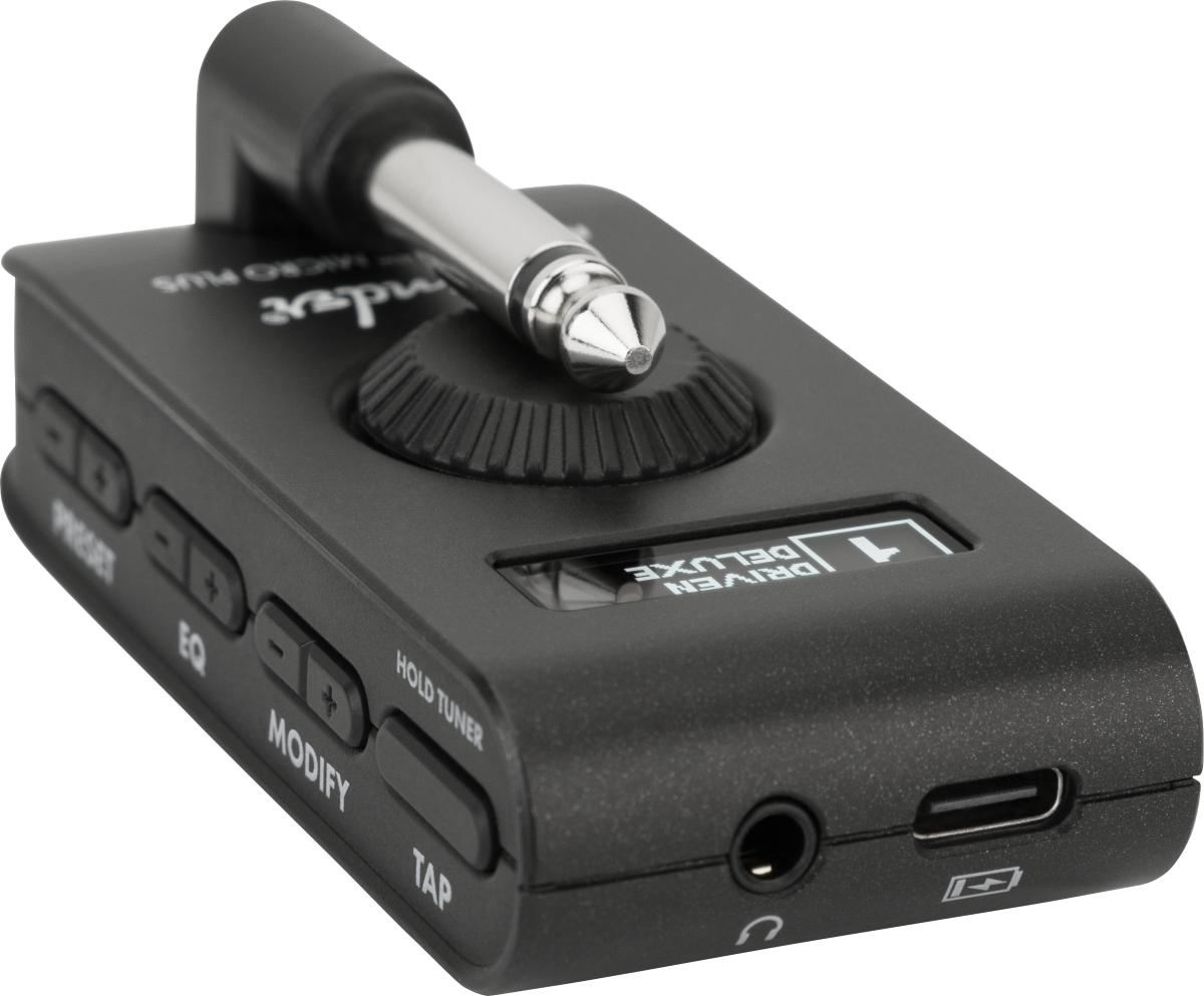 Mustang Micro Plus takes everything players love about Mustang Micro to the next level. With 25 amps and 25 effects onboard, Mustang Micro Plus is the ultimate personal guitar amplifier. Micro Plus features 100 editable preset slots with Fender Tone App support, an integrated tuner, and display.