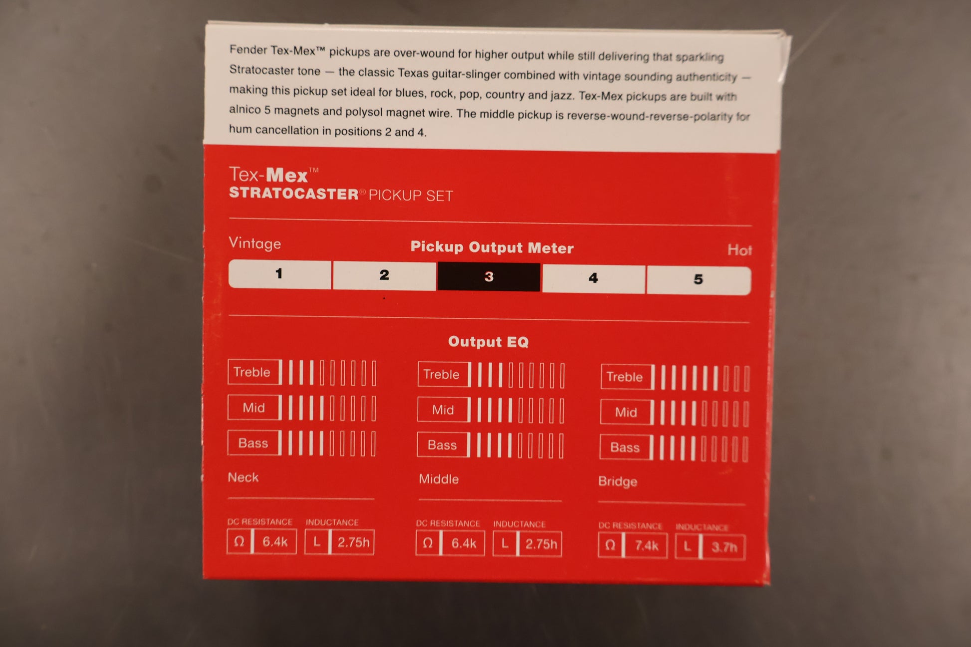 Fender Tex-Mex Strat single-coil pickups offer increased output, sparkling highs and attention-grabbing warm tone that keeps all the characteristics of your favorite vintage-style Stratocaster. From Texas grit to soaring clean tone, they're the pickups of choice for versatile players.