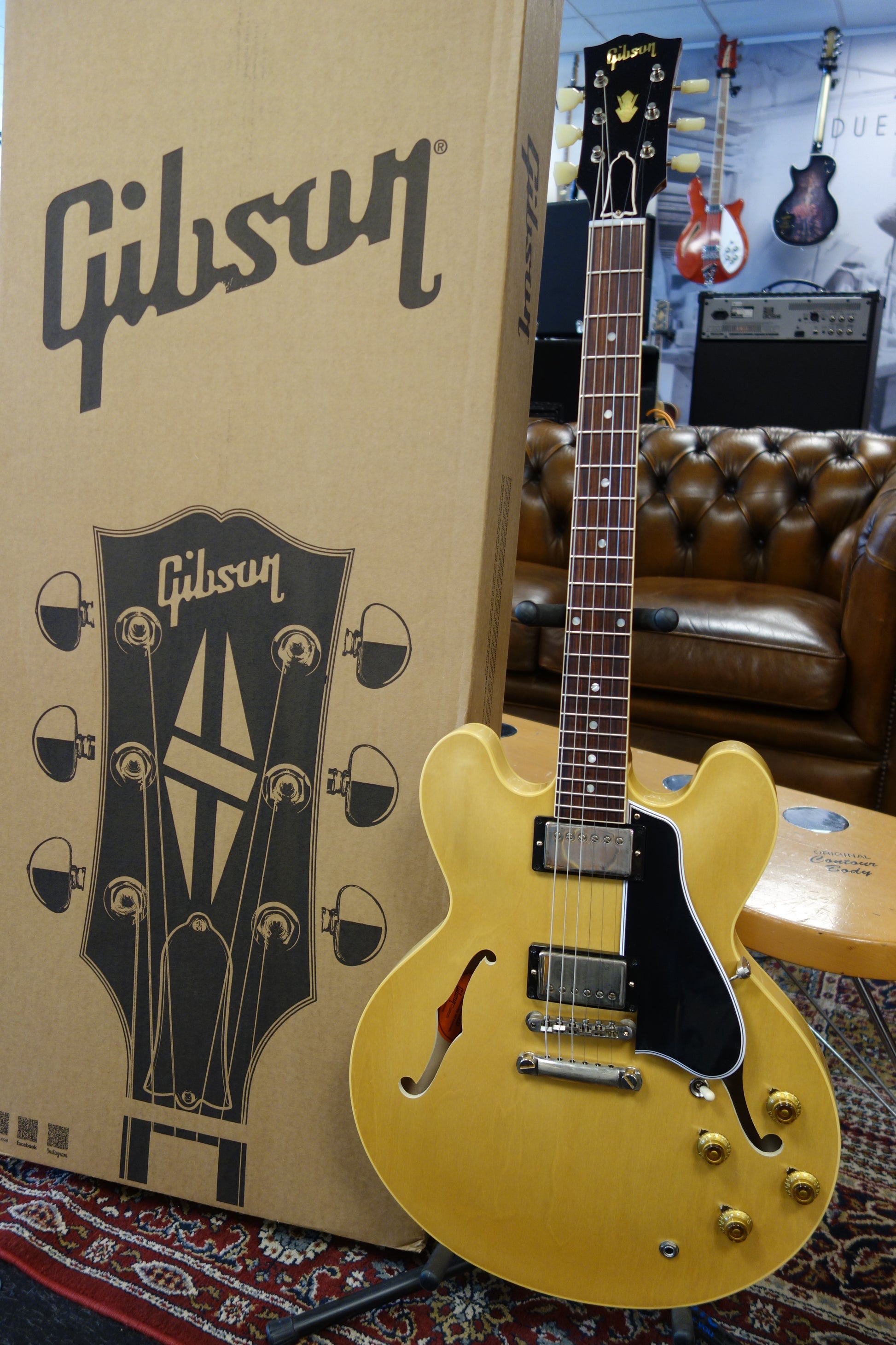 Brand new 2023 model, The Historic Reissue ES-335 is back and better than ever thanks to a year of studying, scanning, and listening to original examples. The expert craftspeople at Gibson Custom Shop have rendered every contour, profile, inlay and color of the priceless vintage models in magnificent detail. The result is a playing and ownership experience that will keep you coming back for more. The 1959 Reissue models feature rounded cutaways, Medium C-shape neck profiles scanned from originals, dot inlays and vintage-replica parts.