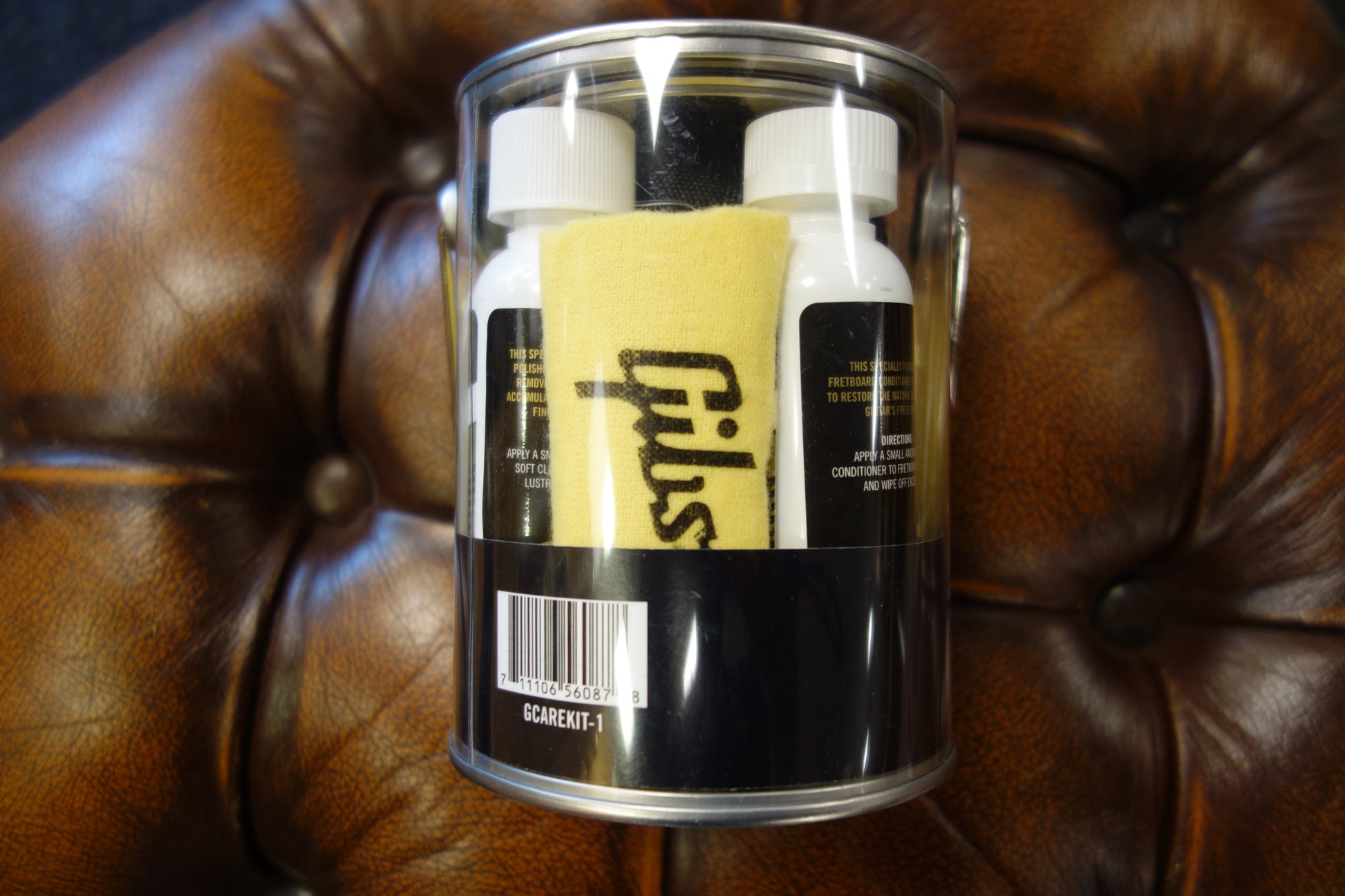 This care kit is the perfect gift or self-purchase for any player. The kit includes the Gibson Low Abrasion Metal Cream, Gibson Premier Fretboard Conditioner, Gibson Pump Polish Finishing Cream, three Gibson Polishing Cloths and a 2" Black 'Seatbelt' Guitar Strap — all in a great bucket that can be taken with you anywhere.