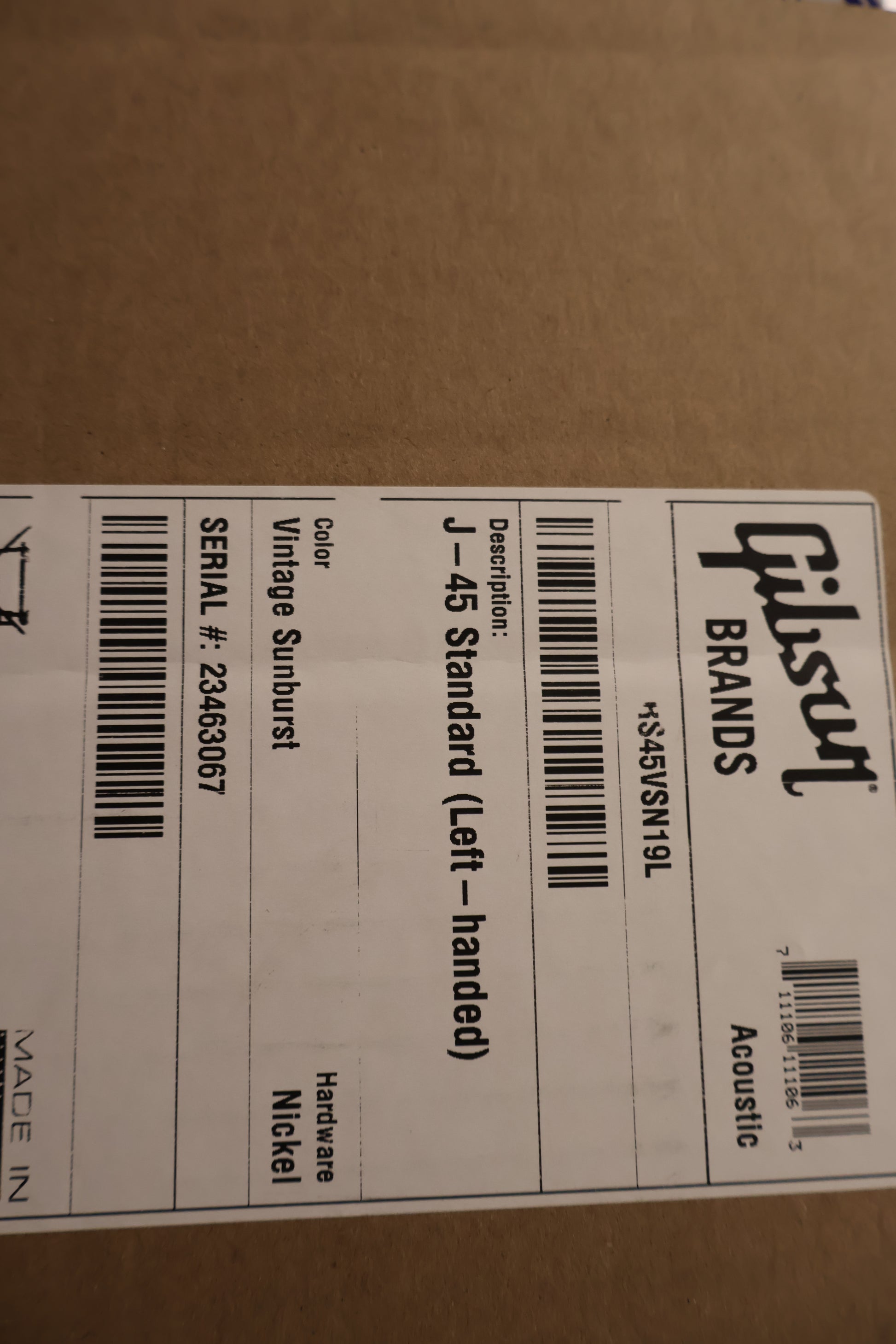 Gibson J-45 Standard (Left-handed) Vintage Sunburst brand new