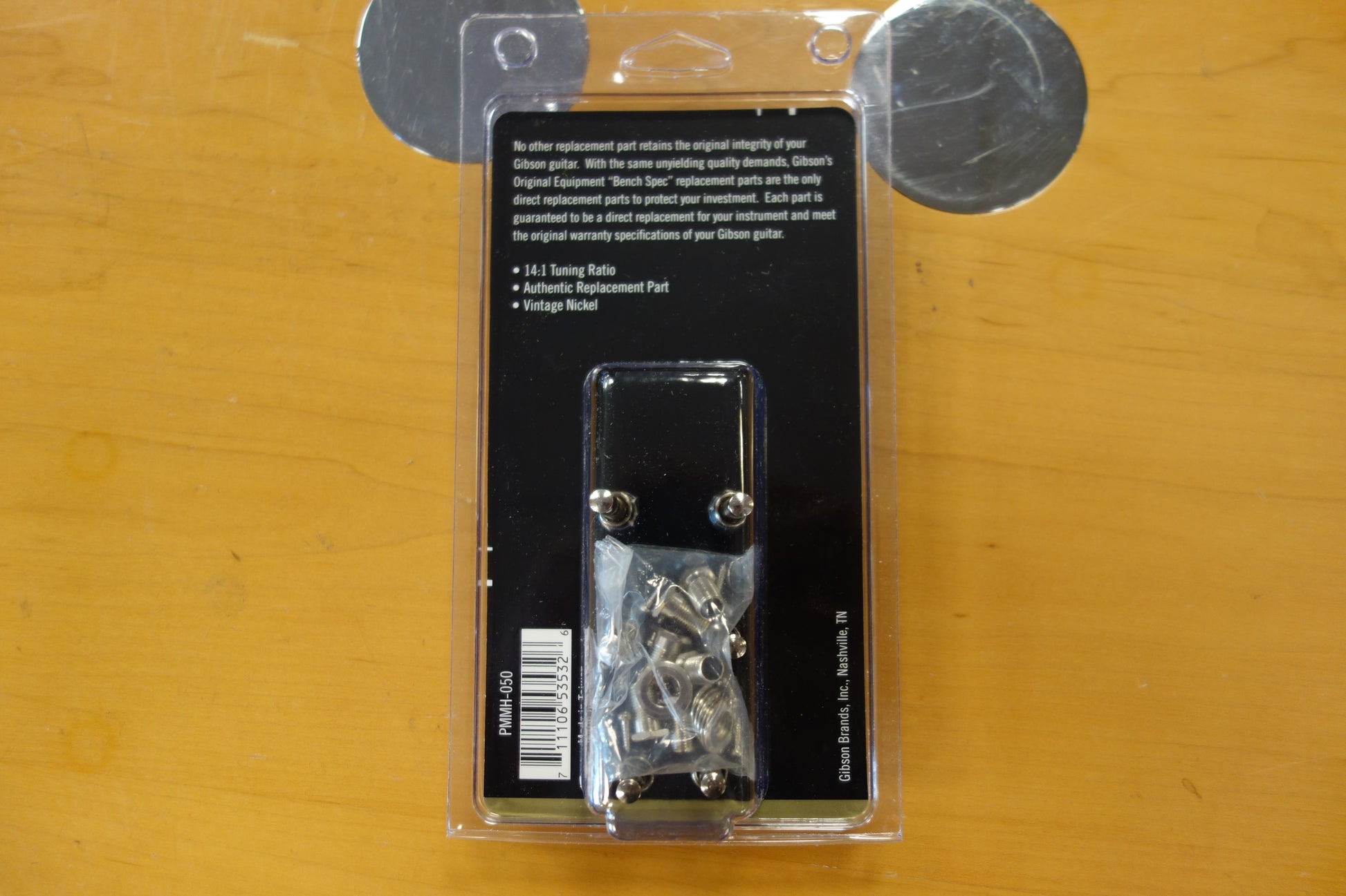 Gibson’s vintage machine heads with pearloid buttons feature solid Nickel, closed housing construction, period-correct vintage styling, and traditional pearloid buttons that deliver precise tuning, while adding a luxurious, classic feel to your guitar’s headstock. This OEM part comes in a Nickel finish. 14:1 Tuning Ratio. Special note: These tuners feature screw in bushings, which require a larger diameter mounting hole than traditional ‘push in’ bushing tuners.