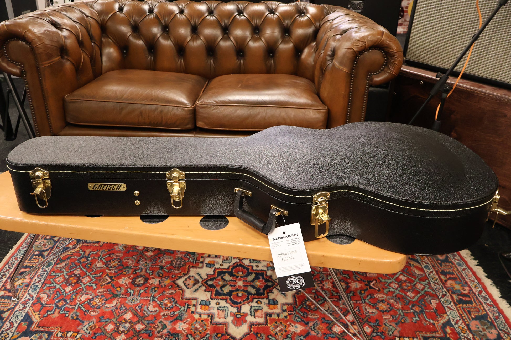 A pair of TV Jones® Classic pickups generates powerful tone and unparalleled dynamics. The new Gretsch "Squeezebox" capacitors provide an incredibly silky high end. Add some expressive shimmer to your playing with the Bigsby B6GVT vibrato tailpiece while the pinned Space Control™ bridge and bone nut combine for impeccable tuning stability. A highly resonant 3-ply maple top with 1959-style trestle bracing and multi-ply laminated maple back and sides make this instrument a veritable cannon, firing off notes with incredible projection and rich, balanced tone. A maple neck with a comfortable and versatile standard "U"-shaped profile for supple playability is capped by a 12"-radius ebony fingerboard with 22 medium jumbo frets and classic Gretsch thumbnail inlays, making complex chords, far-reaching bends and intricate single-note playing effortless.