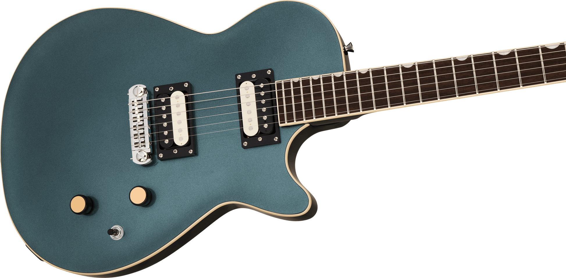The Streamliner™ Jet™ is a no-nonsense tone machine loaded with exciting new features to deliver exceptional performance, easy playability and rock-solid tuning stability at an incredible value. Featuring HotWire™ humbuckers, a Fast “C” neck profile, Pitch-Perfect™ head angle, and an adjustable wraparound bridge, the Streamliner Jet has everything you need to crank out massive riffs and searing solos without breaking the bank.