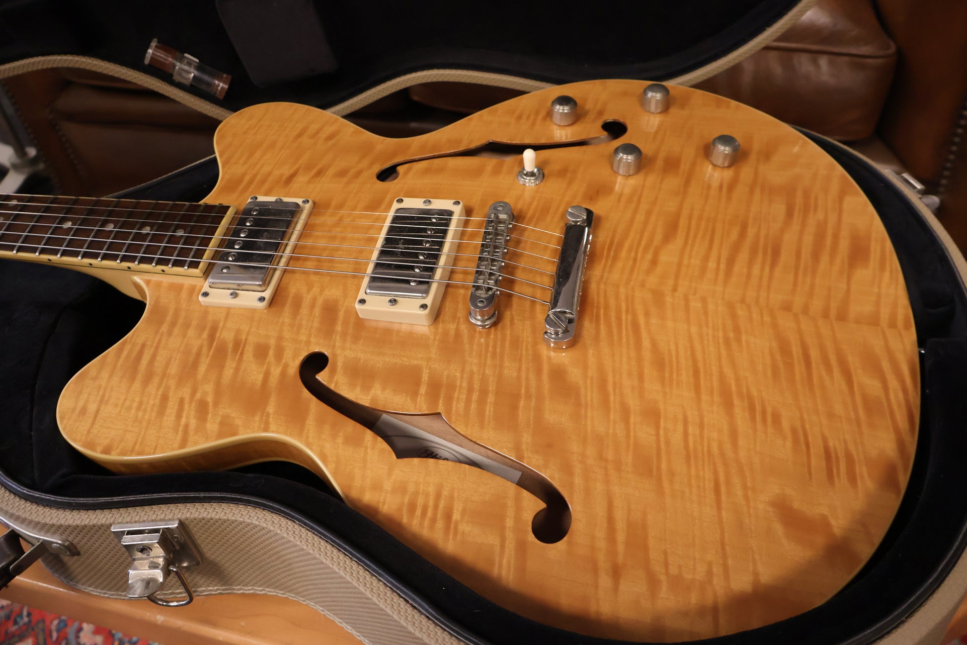 Comes with the original case. In very good condition, this model has a sandde back of the neck wich feels very nice to play, Serial number G08222 makes this a 2006 model.