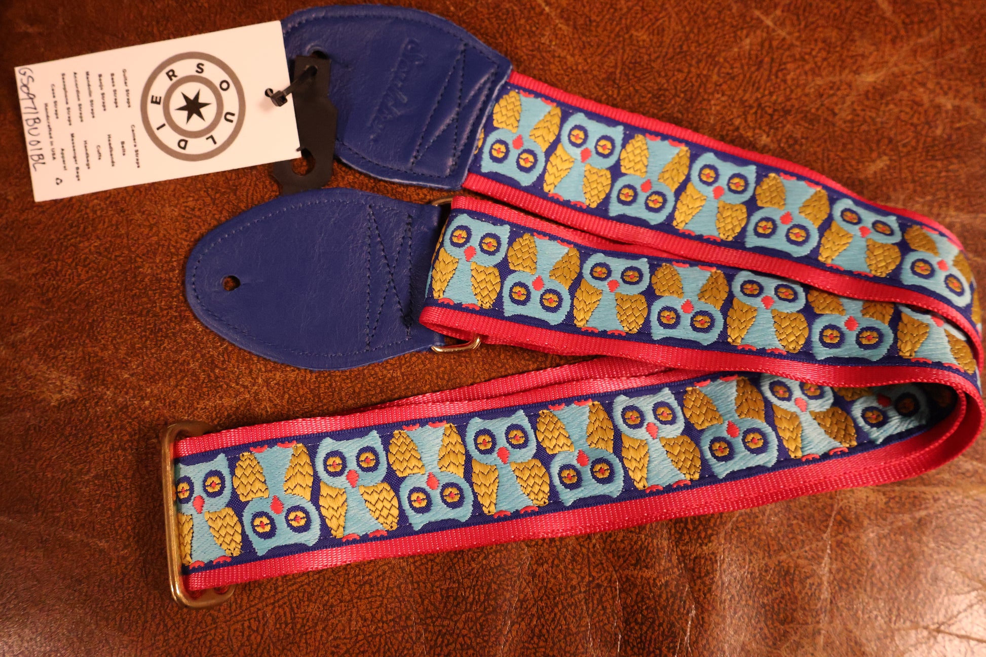 Souldier GS0970 - Owl Blue on Pink Guitar Strap